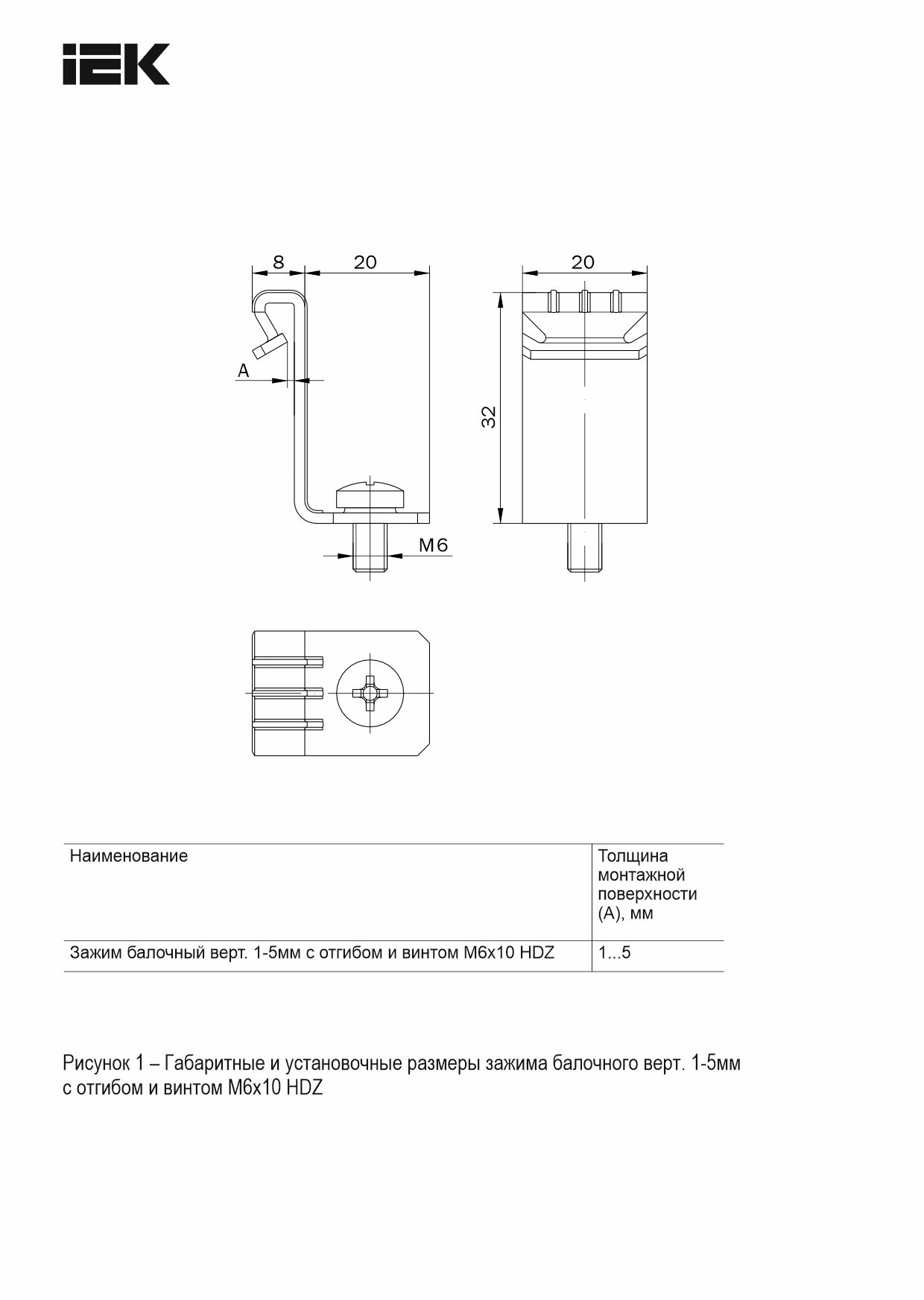 Зажим балочный верт. 1-5мм с отгибом и винтом М6х10 HDZ IEK | код CME21-BZOV-06-HDZ | IEK