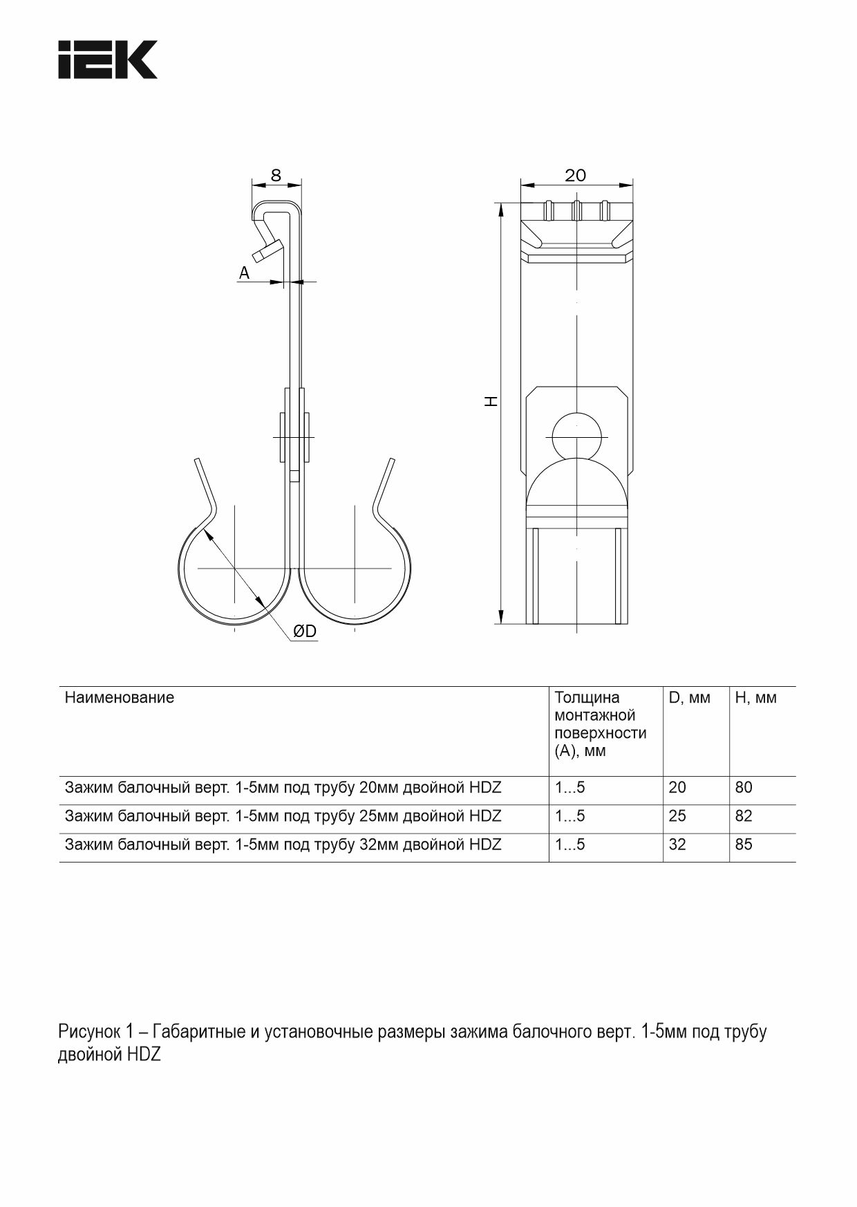 Зажим балочный верт. 1-5мм под трубу 20мм двойной HDZ IEK | код CME21-BZTD-020-HDZ | IEK