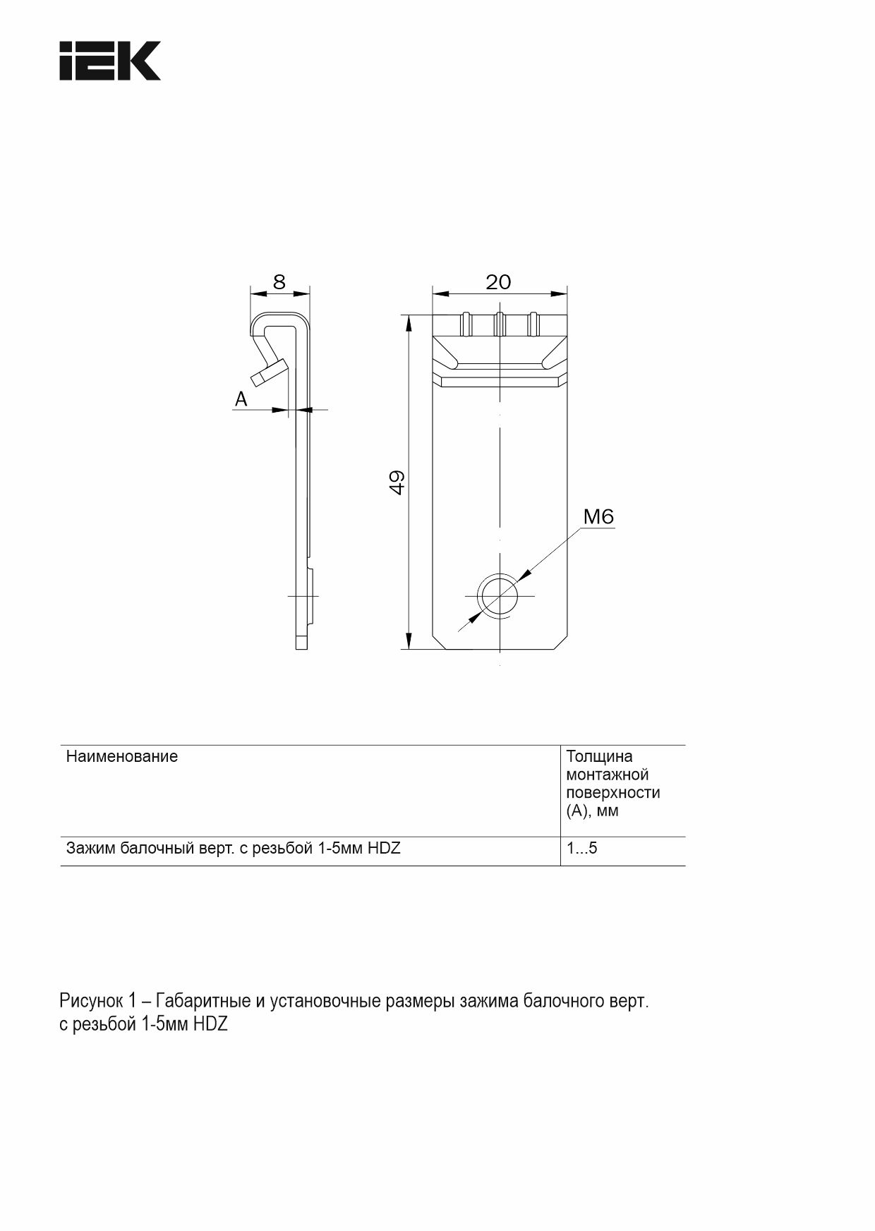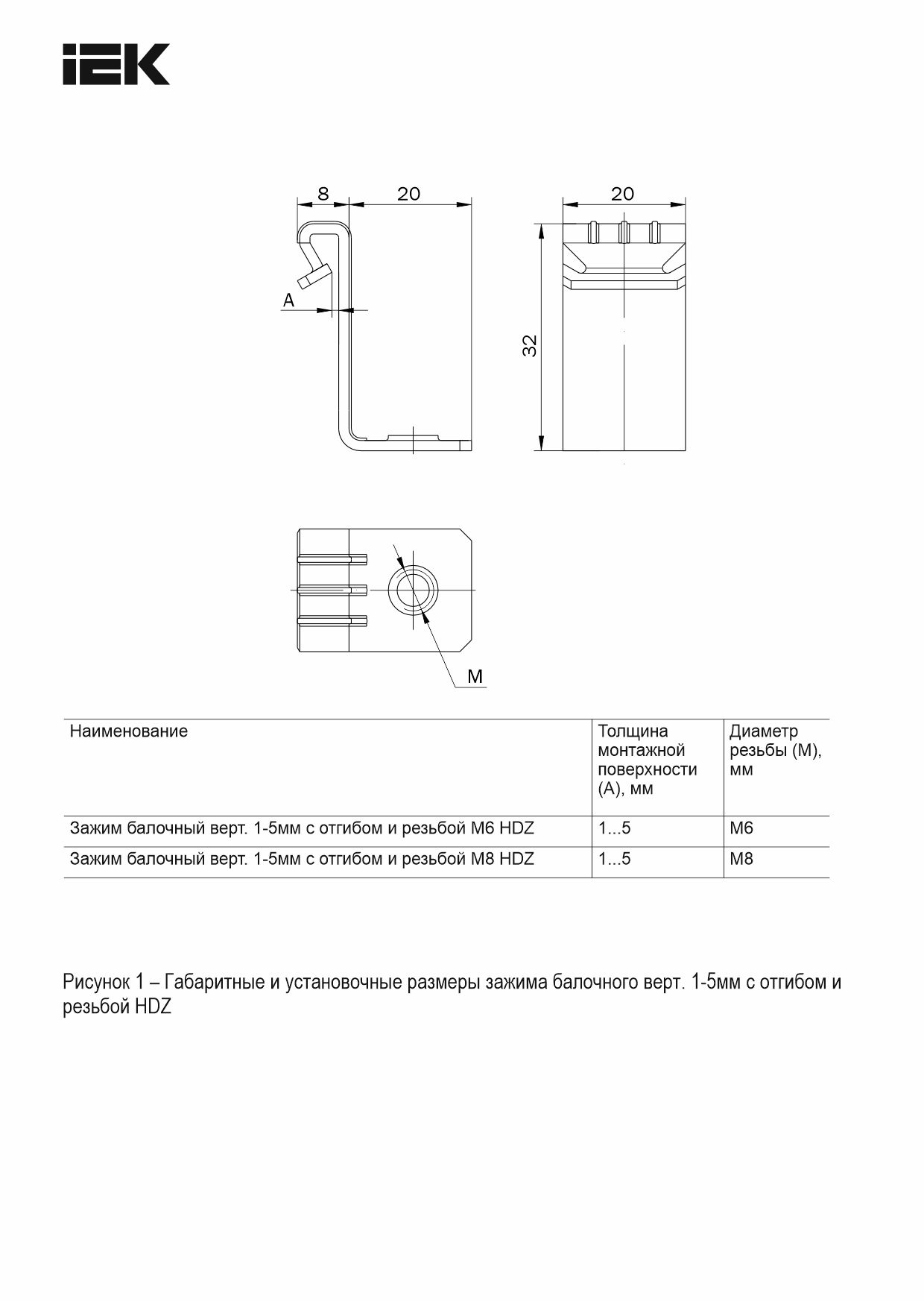 Зажим балочный верт. 1-5мм с отгибом и резьбой М6 HDZ IEK | код CME21-BZOR-06-HDZ | IEK