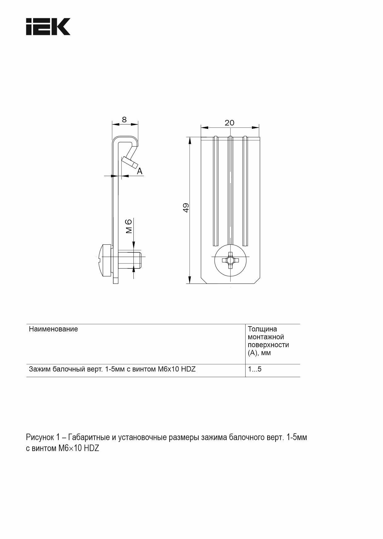 Зажим балочный верт. 1-5мм с винтом М6х10 HDZ IEK | код CME21-BZV-06-HDZ | IEK