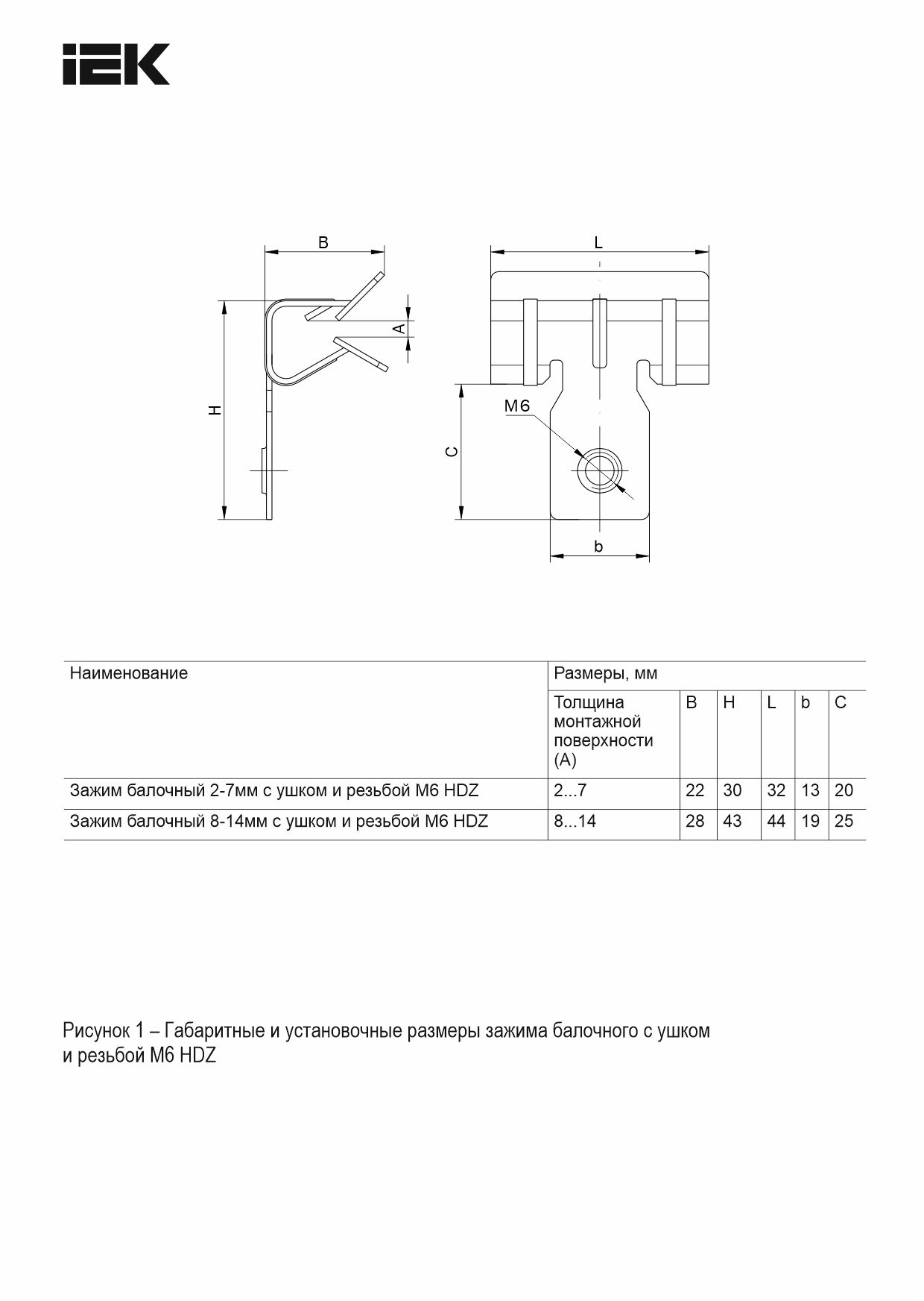 Зажим балочный 2-7мм с ушком и резьбой М6 HDZ IEK | код CME30-BZUR-06-HDZ | IEK