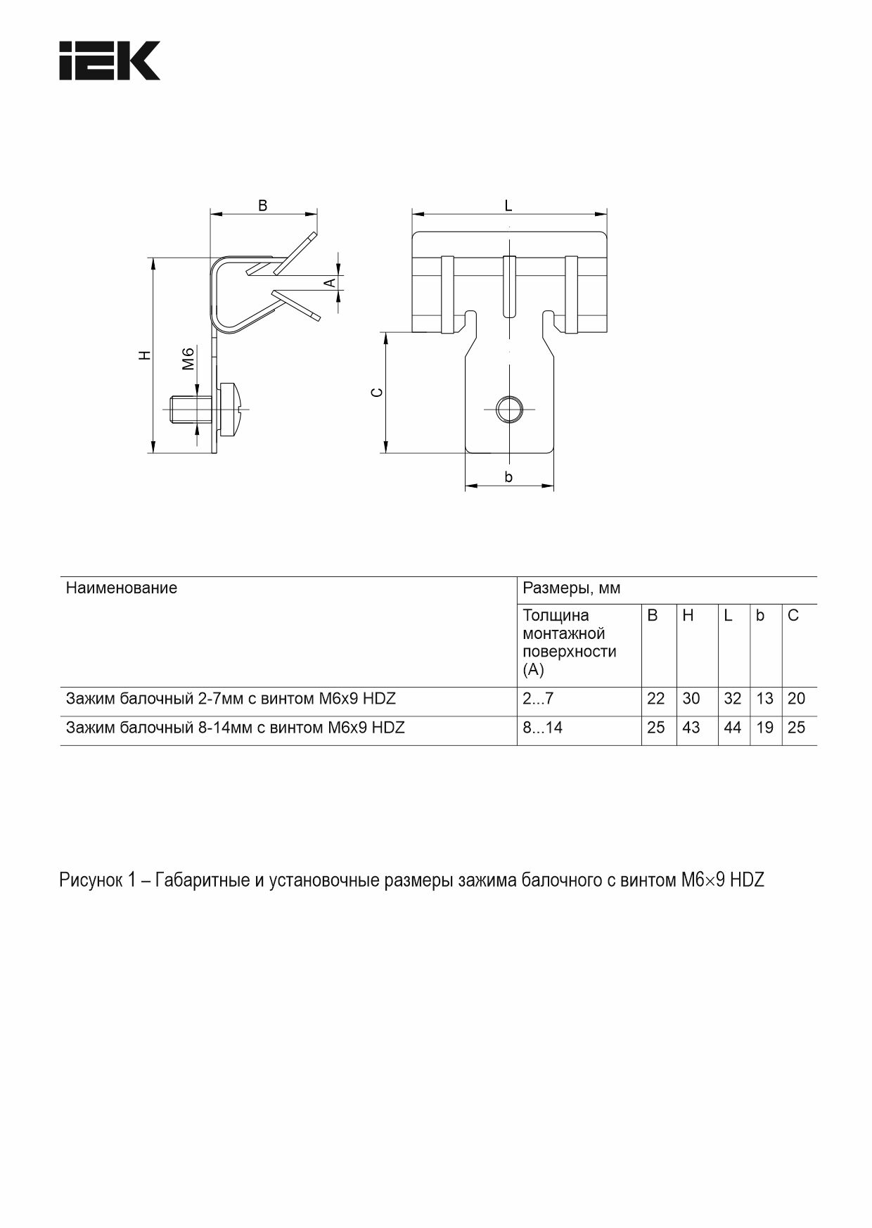 Зажим балочный 2-7мм с винтом М6х9 HDZ IEK | код CME30-BZV-06-HDZ | IEK