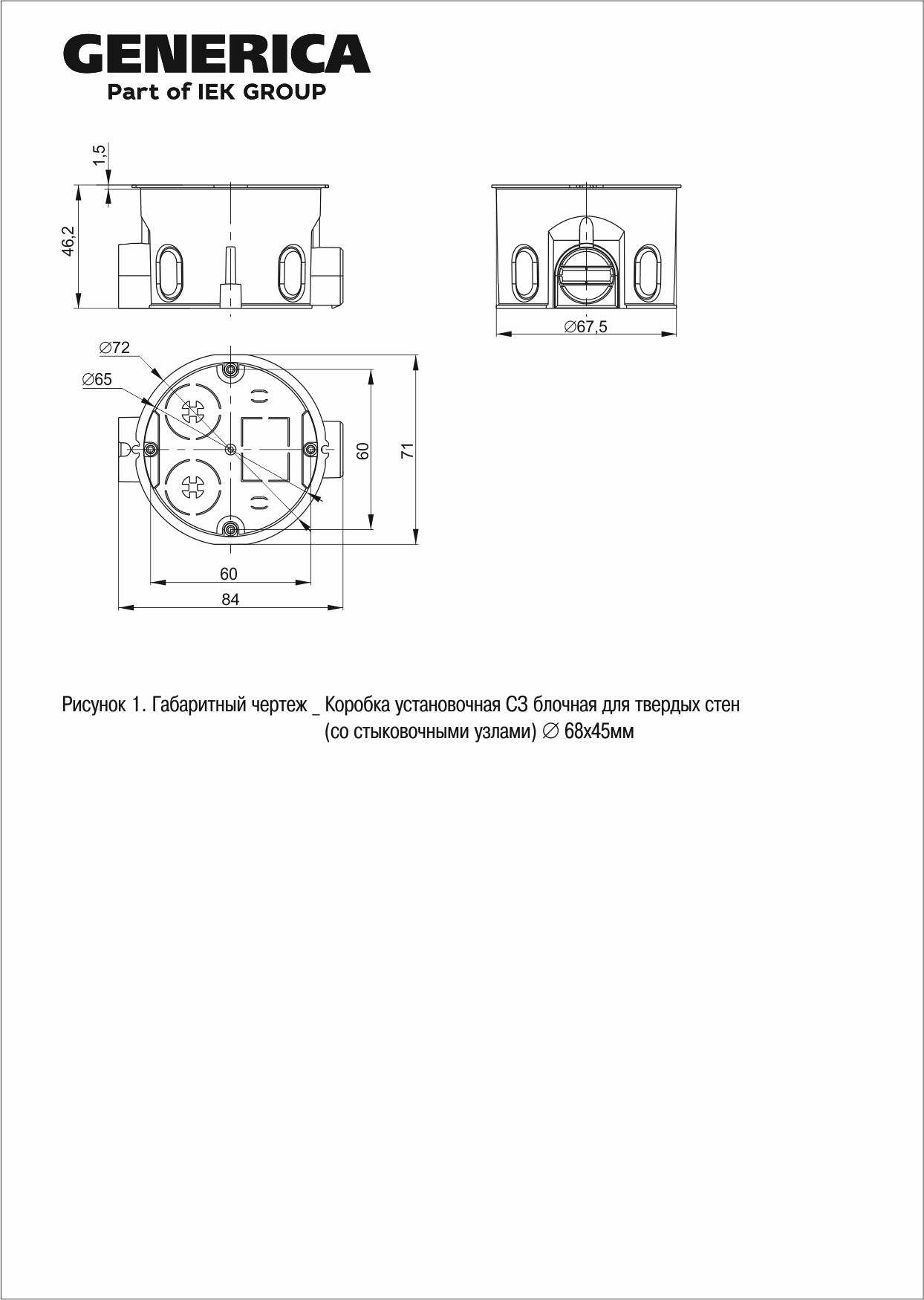 Коробка установочная С3 d68x45 для твердых стен (с саморезами и стык. узлами) | код UKT10-068-045-000-A-S-UO | IEK