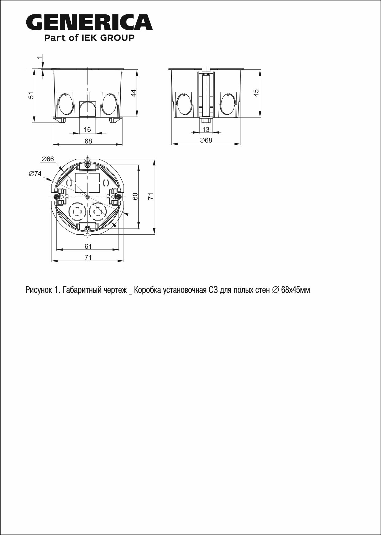 Коробка установочная С3 d68х45 для полых стен (с саморезами и пластик. лапками) | код UKG10-068-045-000-P-UO | IEK