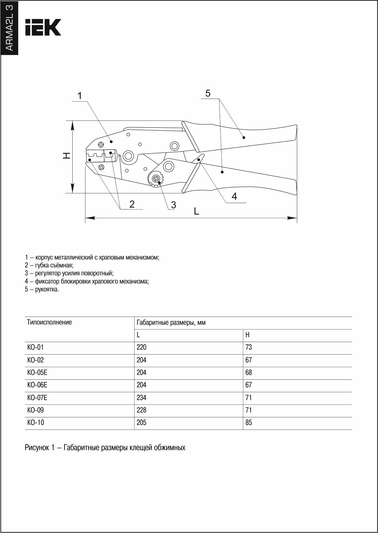 Клещи для обжима КО-09 1.0-10кв.мм | код TKL30-D15-006 | IEK
