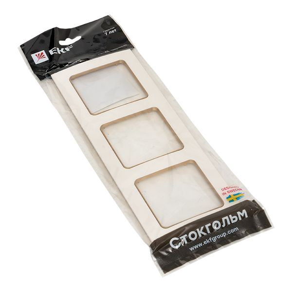 Наименование в прайсе производителя Стокгольм Рамка 3-местная белая с линией цвета шампань EKF PROxima