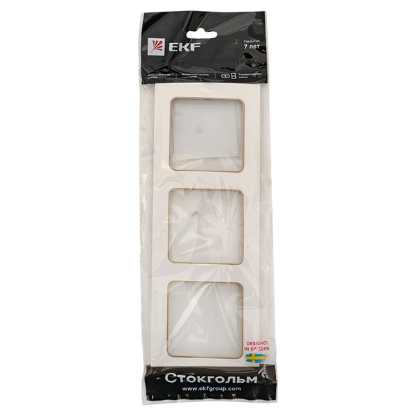 Стокгольм Рамка 3-местная белая с линией цвета шампань PROxima | код EAM-G-302-20 | EKF