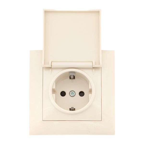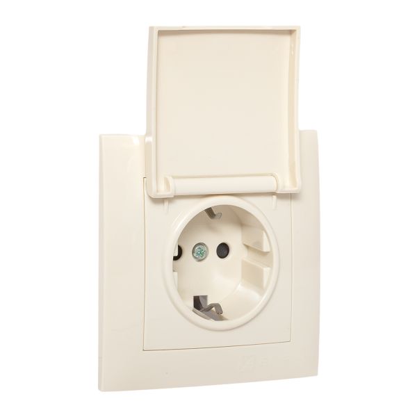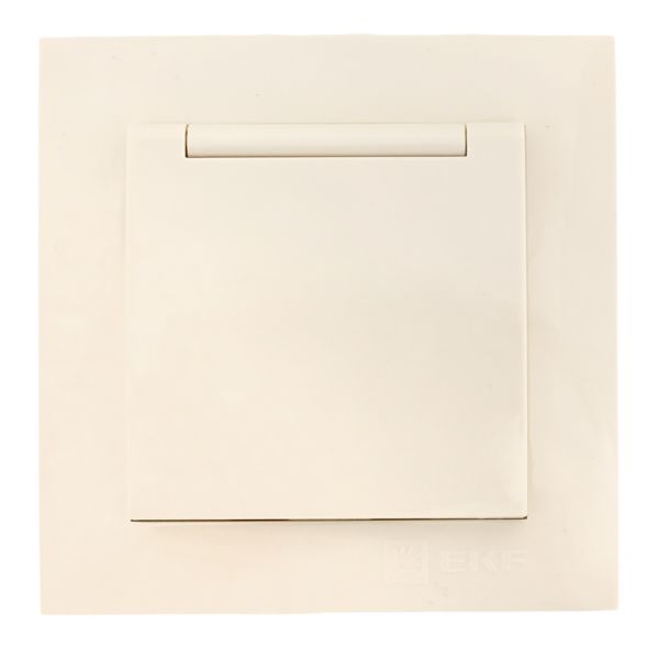 Валенсия розетка 1-местная с/з 16А кремова с крышкой и защ, штор, | код EWV10-124-20 | EKF