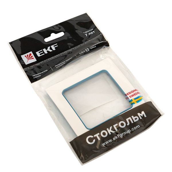 Стокгольм Рамка 1-местная белая с линией цвета синий EKF PROxima