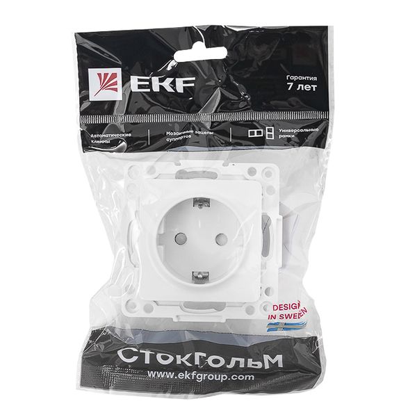 Стокгольм Механизм Розетки 1-местной с/з 16А белый с защ, штор, EKF PROxima