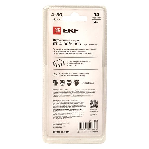 Ступенчатое сверло ST-4-30/2 HSS (14 ступ,) | код ST-4-30/2 | EKF