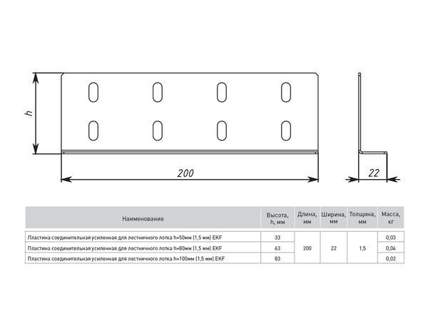 Наименование в прайсе производителя Пластина соединительная усиленная для лестничного лотка h=100 мм (1,5 мм) HDZ EKF