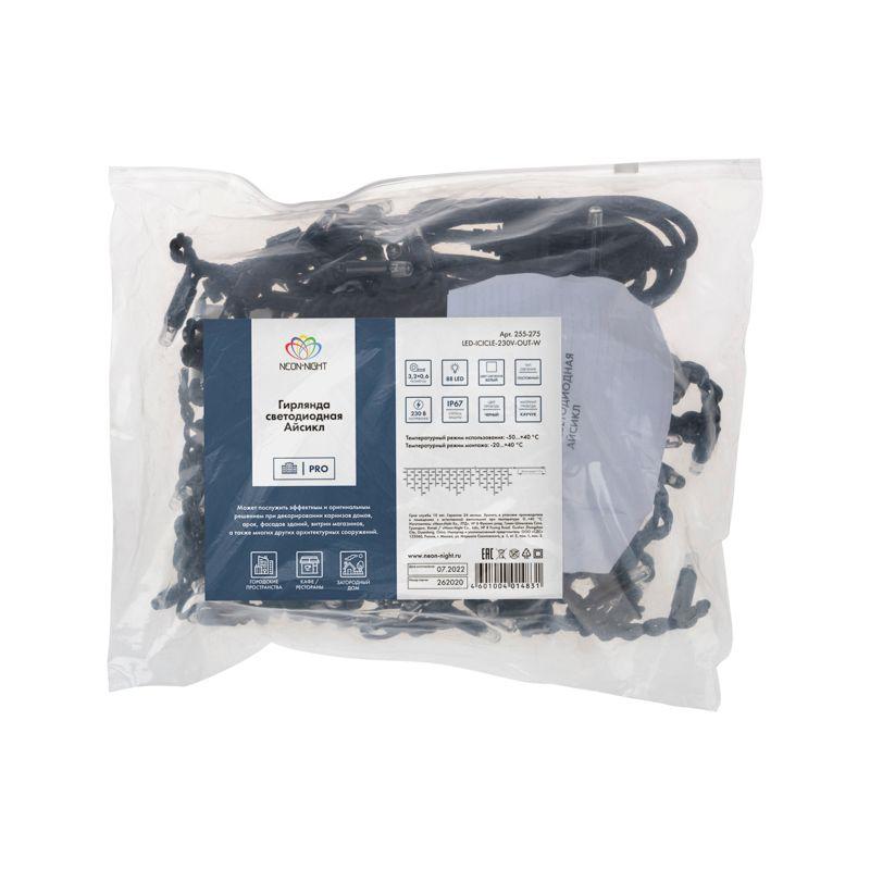 Гирлянда Айсикл Бахрома светодиодный, 3,2 х 0,6 м, черный провод каучук, 230 В, диоды белые, 88 LED | код 255-275 | Neon-Night