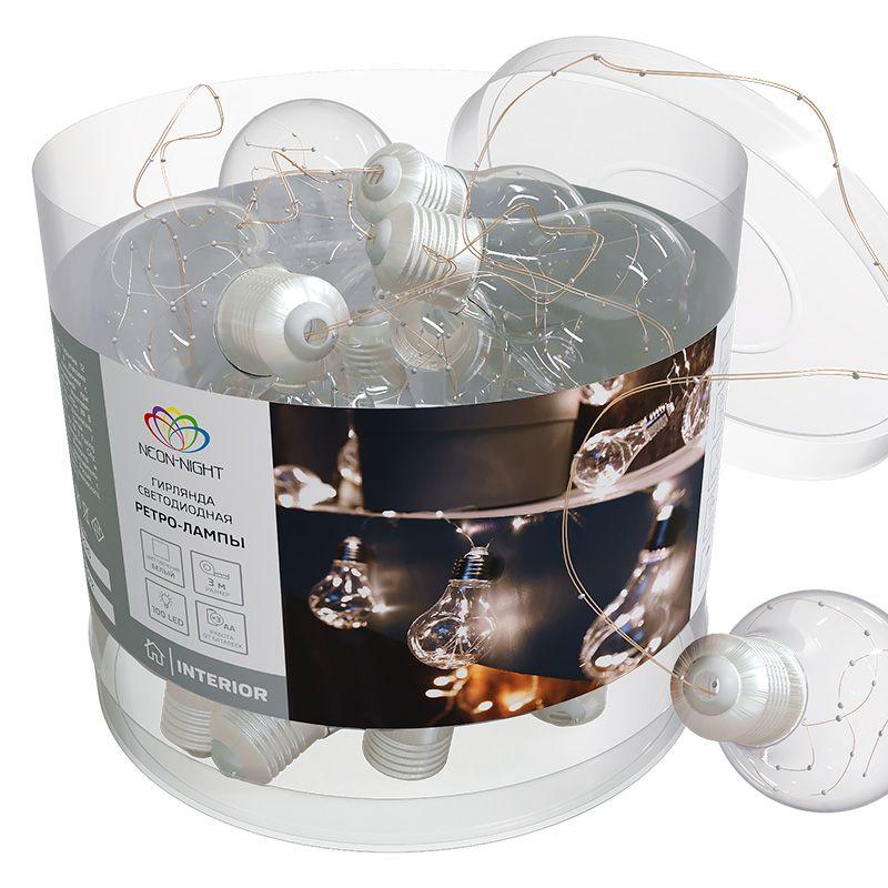Гирлянда светодиодная ретро-лампы 3 м, белое свечение, батарейки 3хАА | код 303-095 | Neon-Night