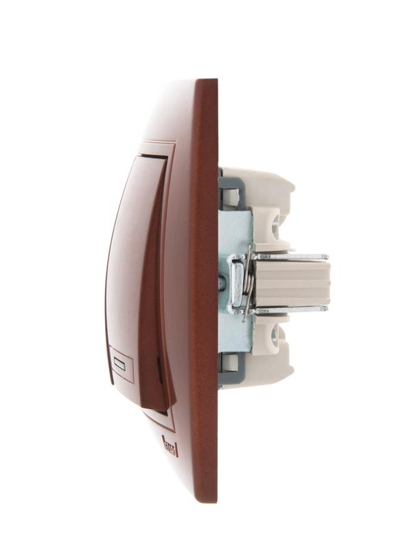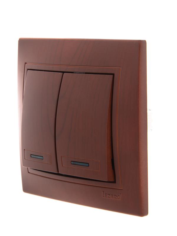 Мира Выключатель двухклавишный с подсветкой вишня | код 701-0601-112 | Lezard