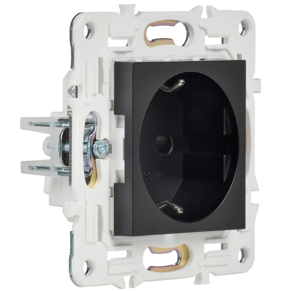 SKANDY Розетка с заземлением с защитными шторками 16А безвинтовой контат SK-R06Bl черный IEKновинка | код SK-R14-16-1-K02 | IEK
