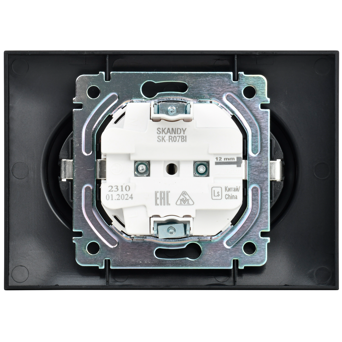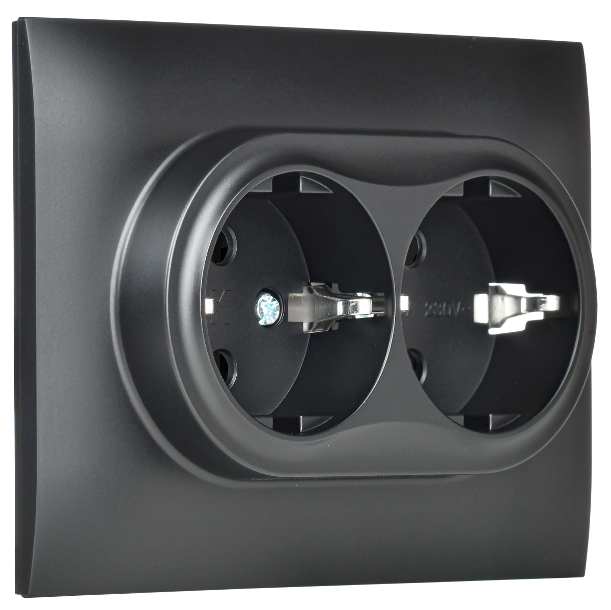 SKANDY Розетка 2-местная с заземлением с защитными шторками 16А в сборе SK-R07Bl черный IEKновинка | код SK-R24-16-K02-F | IEK