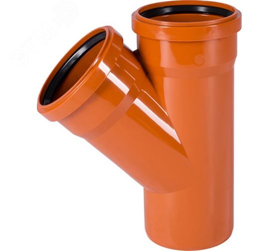 Материал - непластифицированный поливинилхлорид (PVC)|Цвет - оранжево-коричневый RAL 8023|Уплотнения - однолепестковое SBR (NBR)|Химическая стойкость - применяется для агрессивных сред в диапазоне от pH 2 до pH 12|Выдерживаемое давление системы - 0,5 Атм