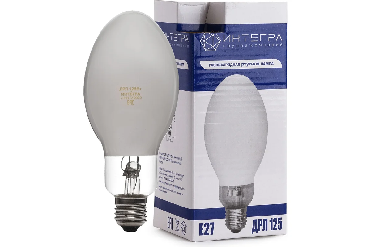 Лампа ДРЛ 125 Вт Е27 (40) | код 35924 | ИНТЕГРА