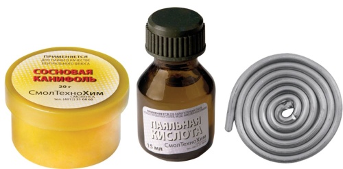 Набор ПОС61 (10гр Канифоль/ 20гр Кислота паяльная/ 15мл Флюс СКФ) | код 60621 | FIT