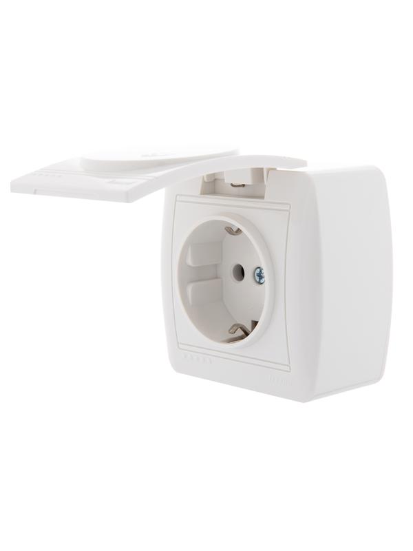 DEMET Розетка с заземлением с крышкой наружная белая | код 711-0200-123 | Lezard