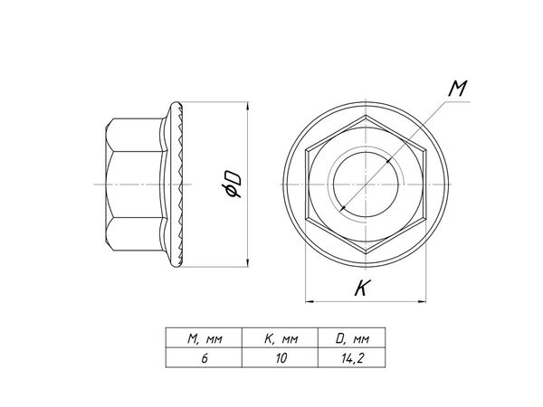 Наименование в прайсе производителя Гайка с фланцем М6 DIN 6923 EKF