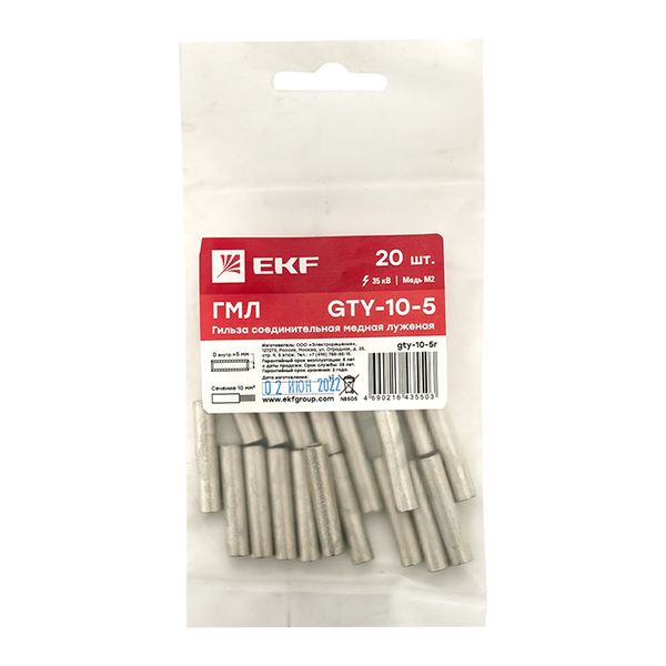Наименование в прайсе производителя Гильза соединительная медная луженая GTY-10-5 (ГМЛ) (20шт,) EKF PROxima