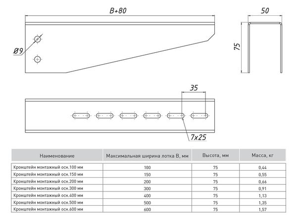 Наименование в прайсе производителя Кронштейн монтажный 400 мм (1,5 мм) EKF