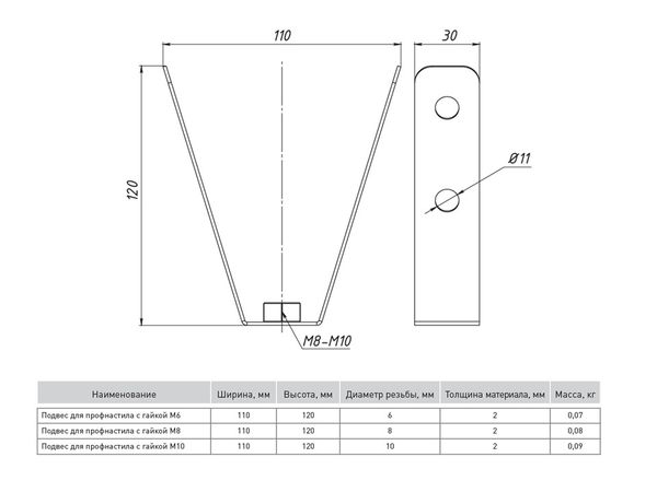Наименование в прайсе производителя Подвес для профнастила с гайкой М8 (2 мм) EKF