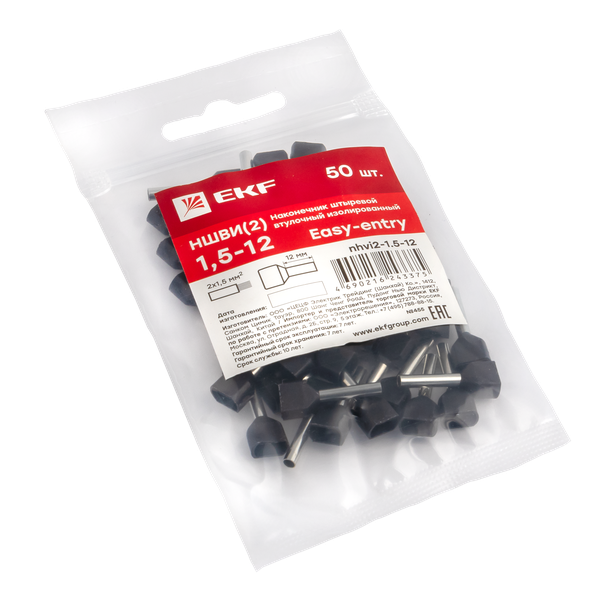 Наименование в прайсе производителя Наконечник штыревой втулочный НШвИ(2) 1,5-12 (50шт,) EKF