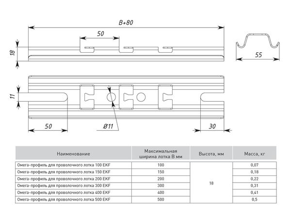Наименование в прайсе производителя Омега-профиль для проволочного лотка 300 (1,5 мм) EKF