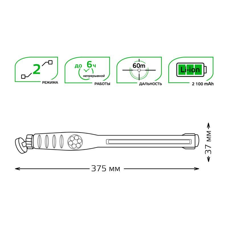 Фонарь аккумуляторный автомобильный 8Вт 500лм аккум. Li-ion 2.1А.ч диммир. | код. GF801 | GAUSS
