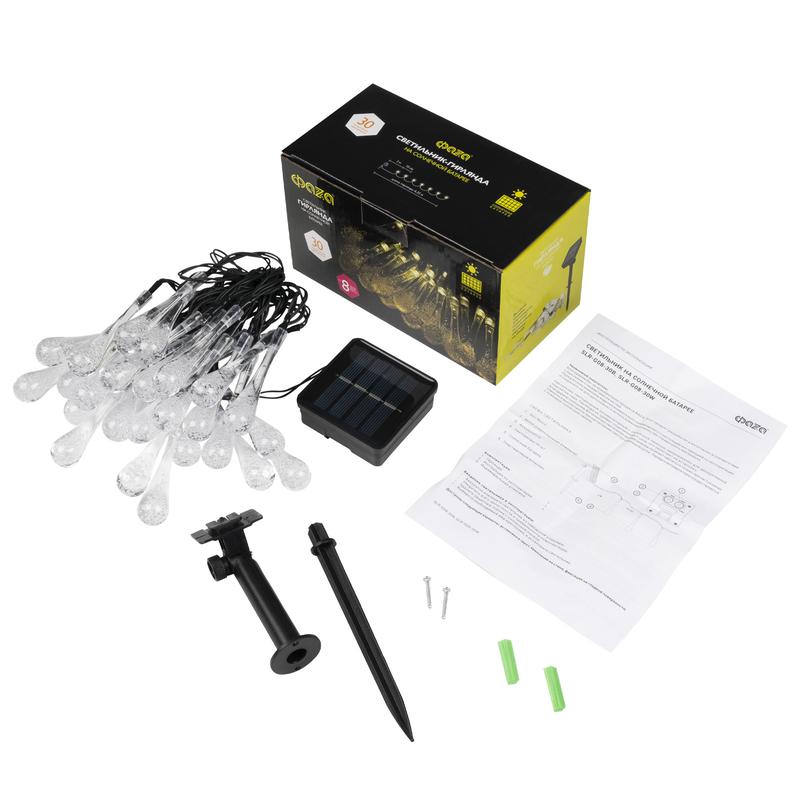 Светильник светодиодный SLR-G08-30W садовый; гирлянда капли теплый бел. солнечная батарея | код. 5040960 | ФАZА