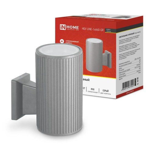Светильник НБУ LINE-1хA60-GR CITY E27 IP65 230В уличный односторон. алюм. под лампу 1хA60 сер. | код 4690612037929 | IN HOME