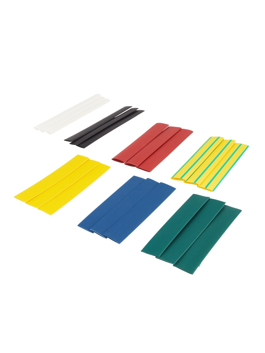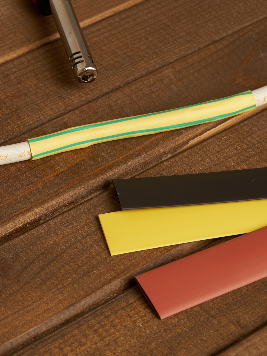 Трубка термоусадочная используется для электрической изоляции, герметизации и маркировки соединений проводов, не содержит галогенов, обладает свойством подавления горения. Принцип действия — изменение своего диаметра путем усадки в два раза. Набор IEK вк