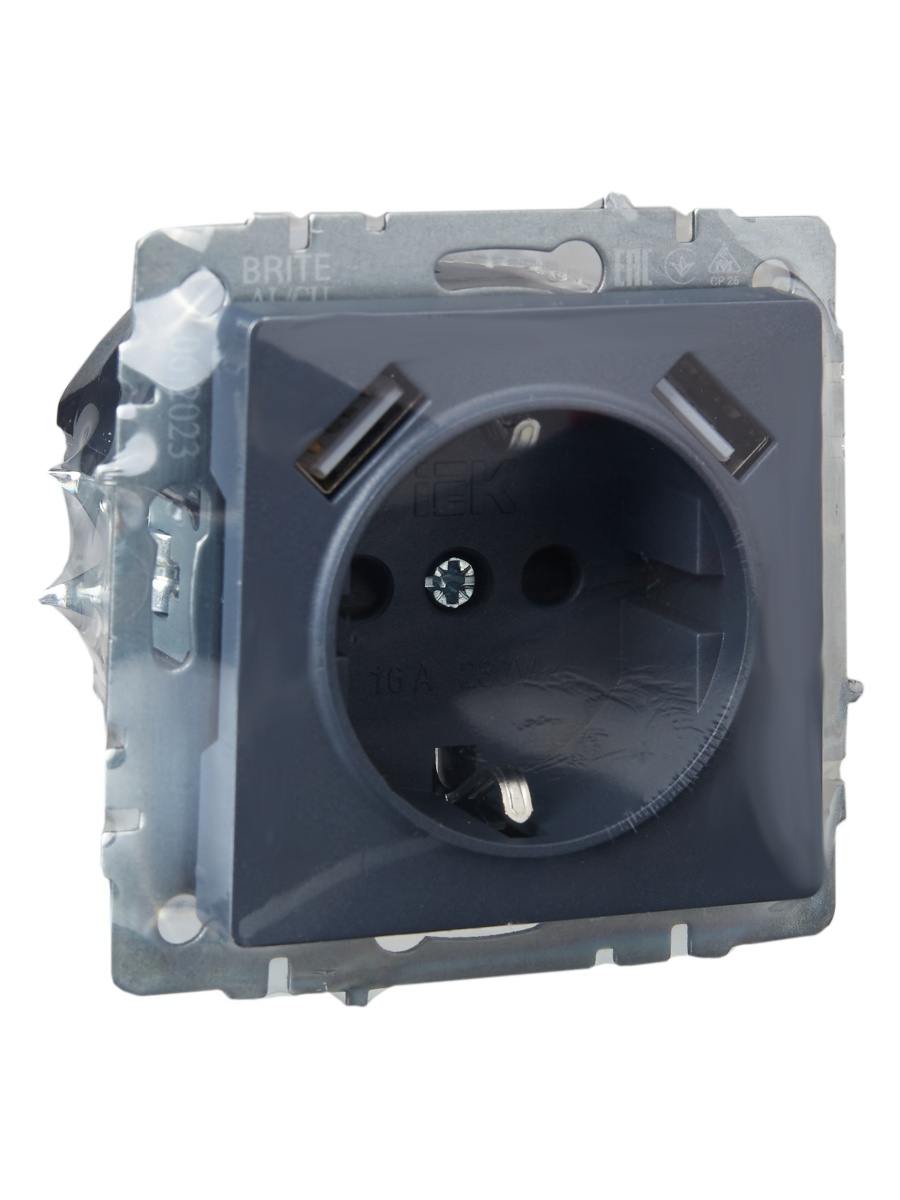 Розетка BRITE РЮш10-1-БрМ 16А с USB A+A 2.1А с заземл. защ. шторки маренго | код BR-R14-16-U21-D21-K35 | IEK