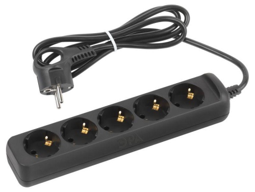 Удлинитель электрический UX-5e-1.5m-B с заземлением 5 розеток 1.5м ПВС 3х0.75кв.мм 10А черн. | код. Б0057724 | Эра
