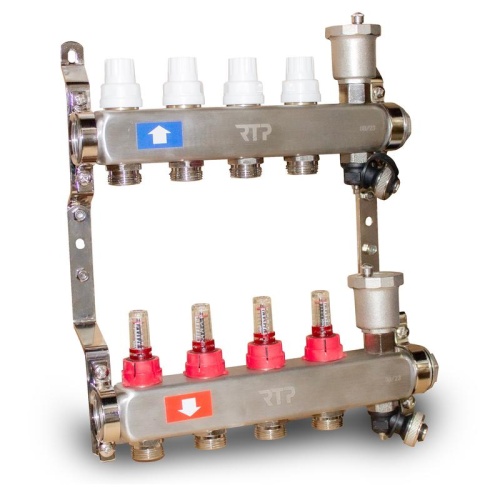 Группа коллекторная с расходомерами (евроконус 3/4дюйм) нерж. сталь SUS 304 1дюйм х4 выхода | код 42496 | RTP