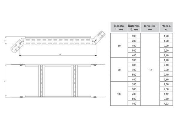 Высота лестничного лотка (боковой стенки) 100 мм