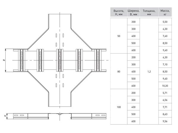 Наименование в прайсе производителя Ответвитель крестообразный для лестничного лотка 100х300 мм EKF