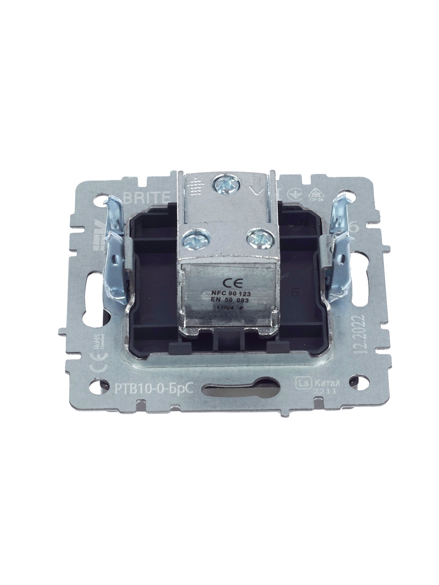 Наименование в прайсе производителя BRITE Розетка TV проходная РТВ10-0-БрС сталь
