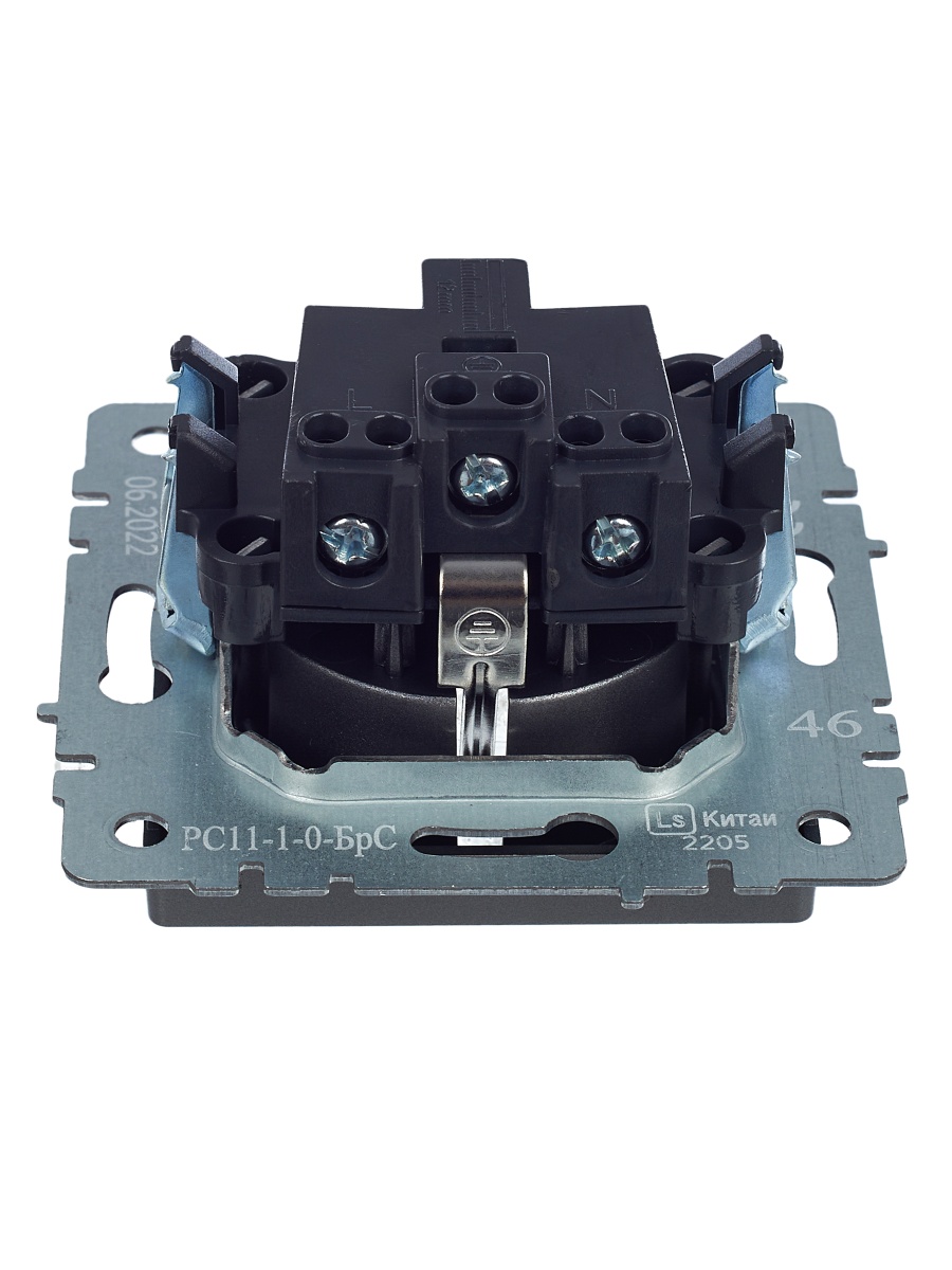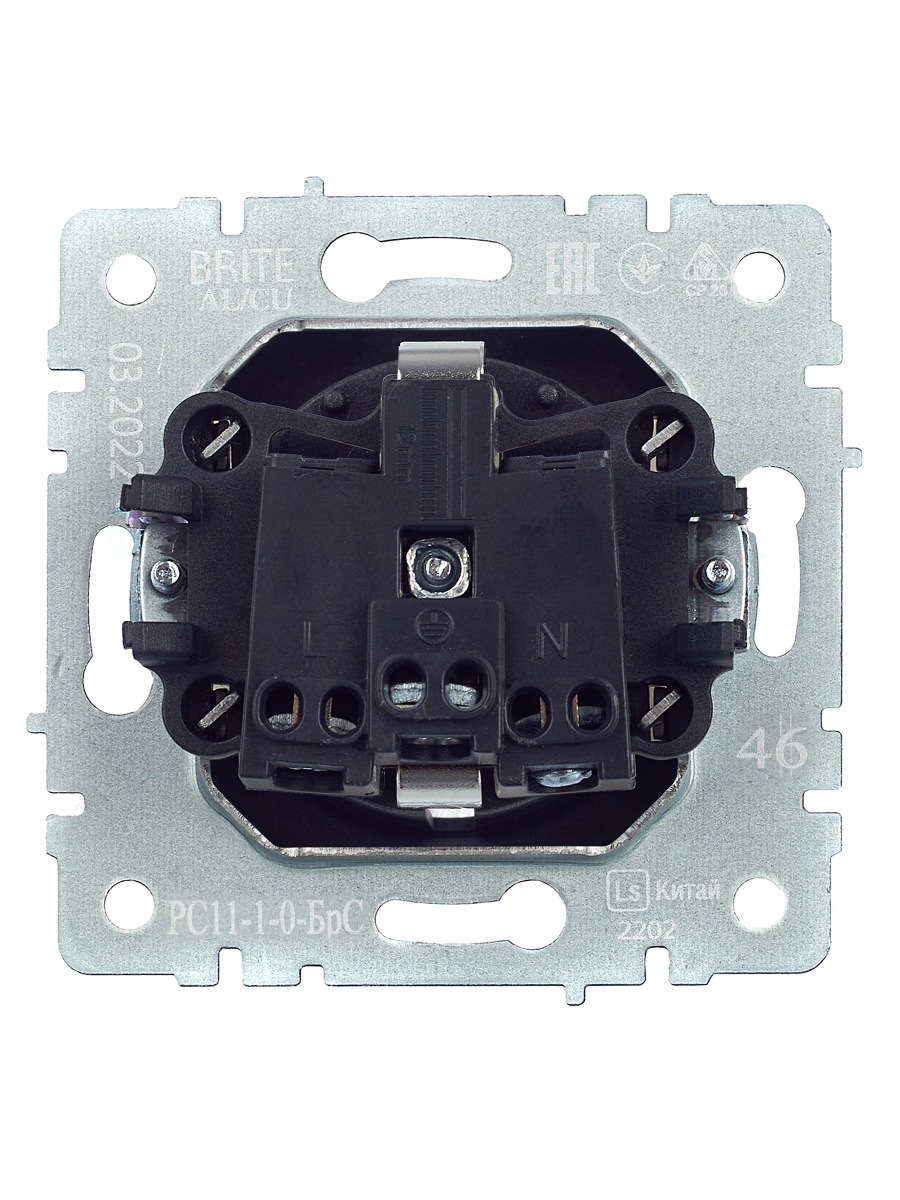Наименование в прайсе производителя BRITE Розетка 1-местная с заземлением без защитных шторок 16А РС11-1-0-БрС сталь