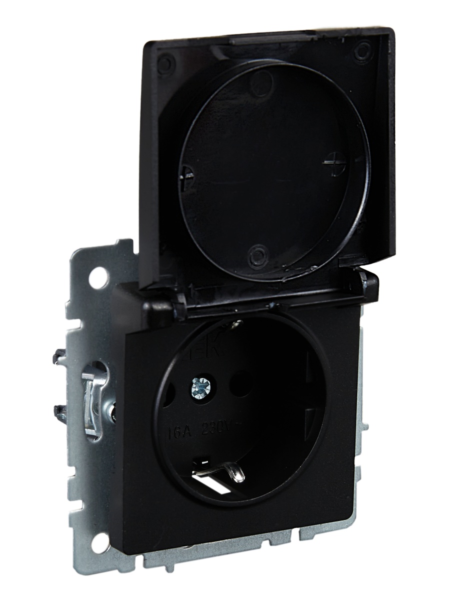 Купить BRITE Розетка 1-местная с заземлением с защитными шторками и крышкой 16А IP20 РСбш10-3-БрЧ черный | код BR-R16-16-K02 | IEK | Магазин электрики - электрооборудование от разных производителей.