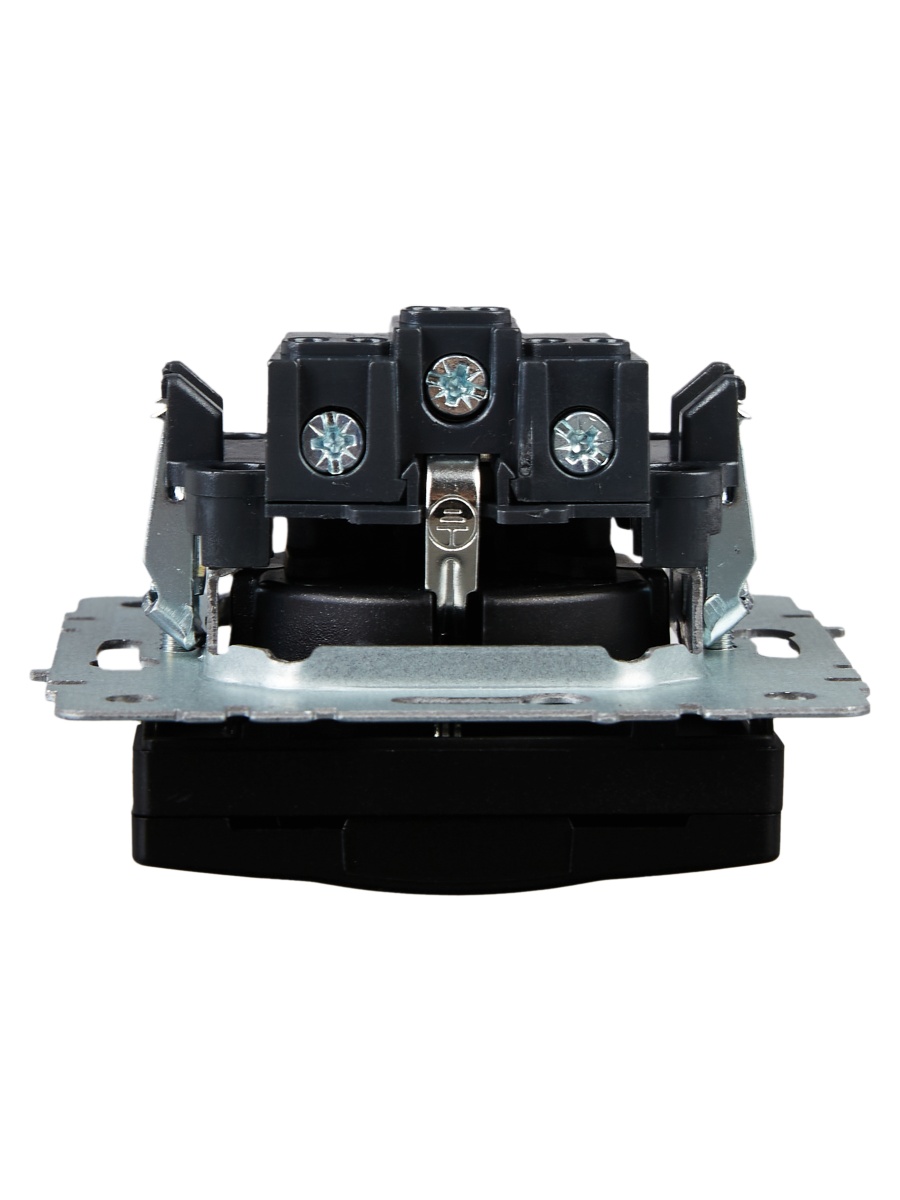 Наименование в прайсе производителя BRITE Розетка 1-местная с заземлением с защитными шторками и крышкой 16А IP20 РСбш10-3-БрЧ черный