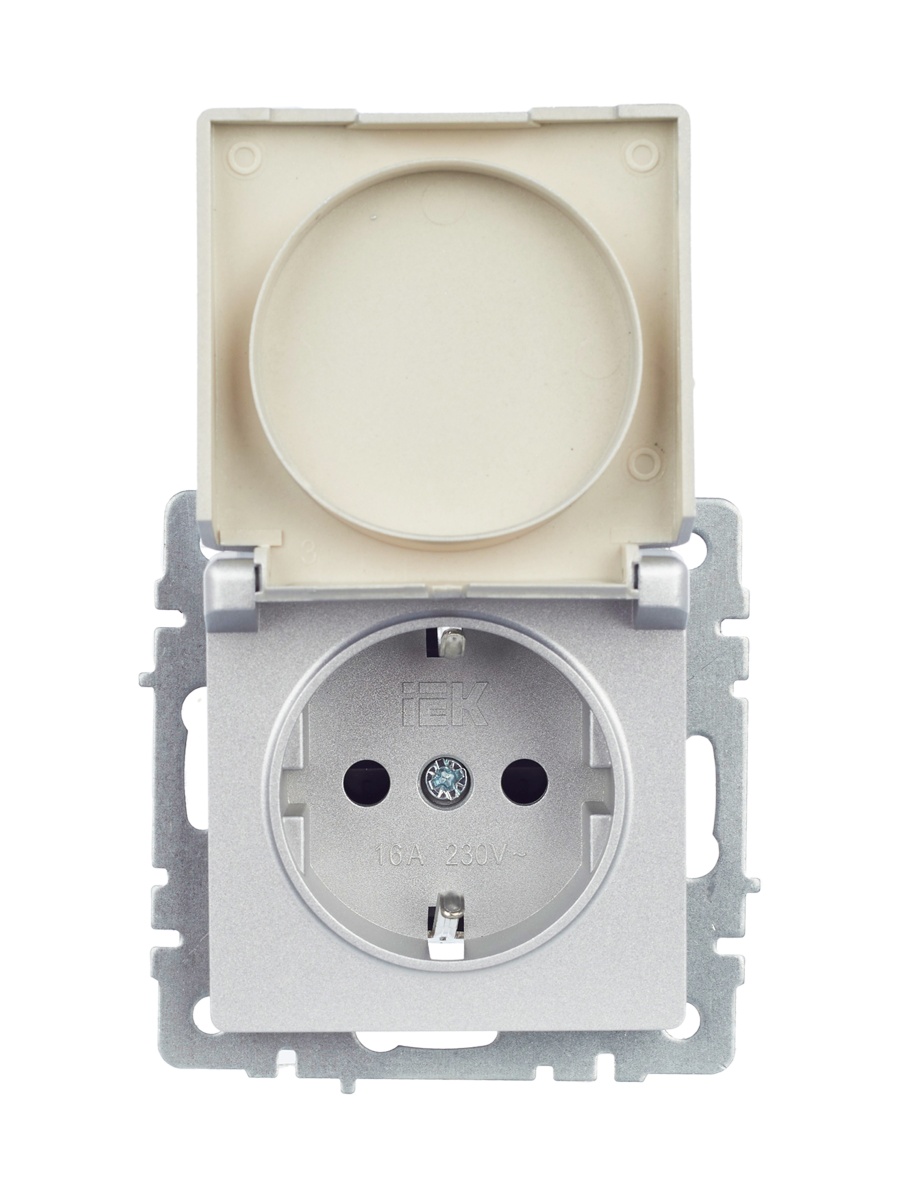 Купить BRITE Розетка 1-местная с заземлением с защитными шторками и крышкой 16А IP20 РСбш10-3-БрА алюминий | код BR-R16-16-K47 | IEK | Магазин электрики - электрооборудование от разных производителей.