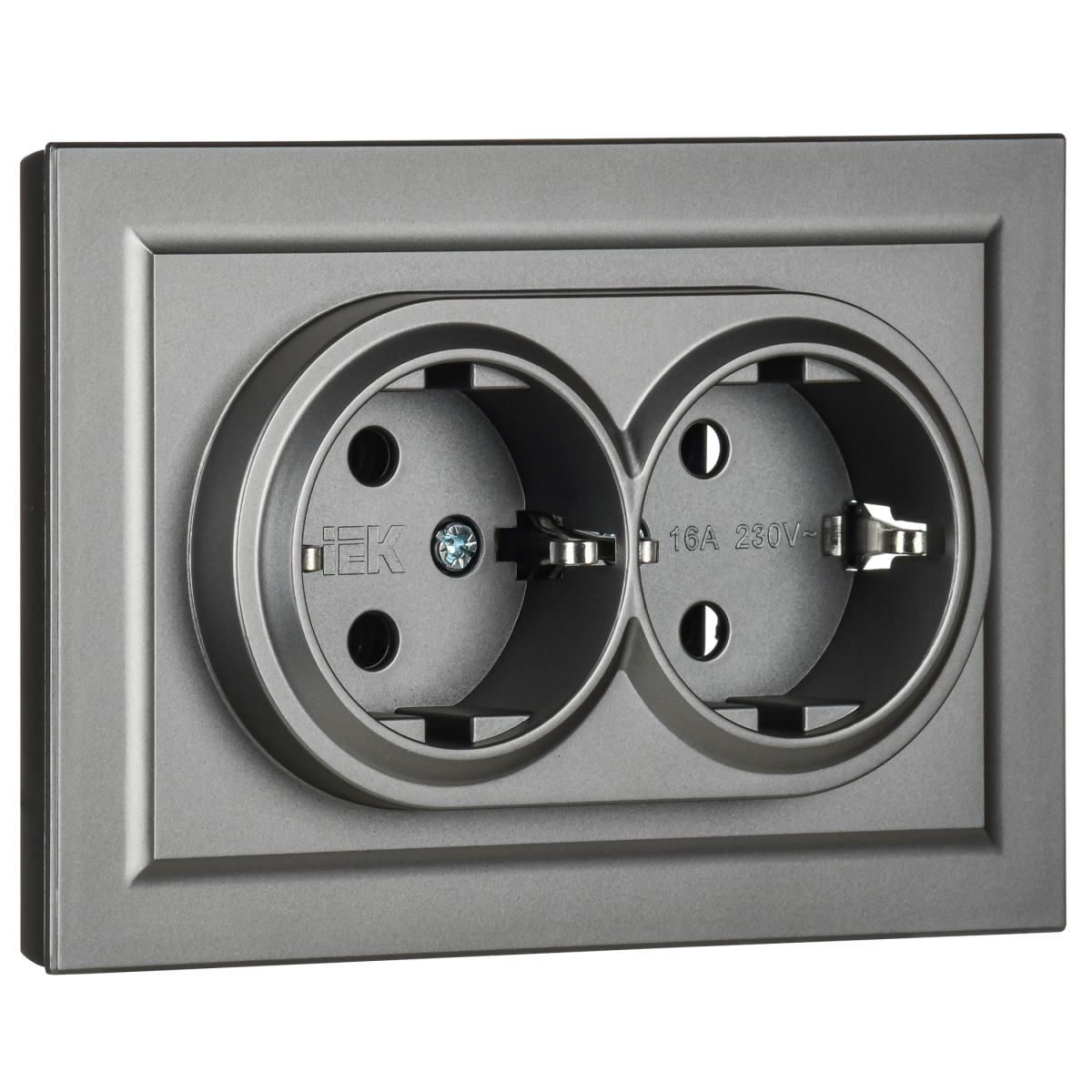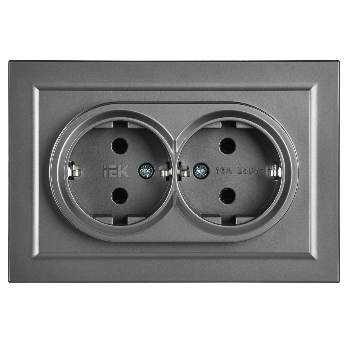 Купить BRITE Розетка 2-местная с заземлением без защитных шторок 16А в сборе РС12-3-БрС сталь | код BR-R21-16-K46-F | IEK | Магазин электрики - электрооборудование от разных производителей.