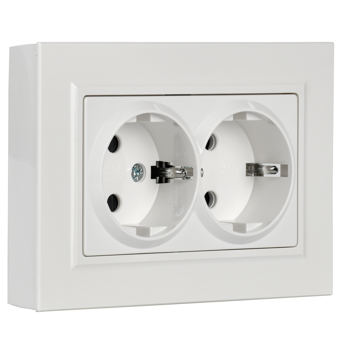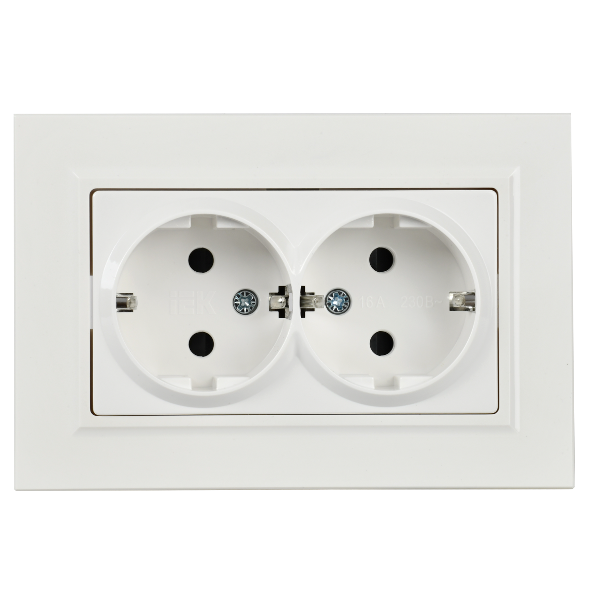 Купить BRITE Розетка 2-местная с заземлением с защитными шторками 16А в сборе РСш12-3-БрБ белый | код BR-R24-16-K01-F | IEK | Магазин электрики - электрооборудование от разных производителей.
