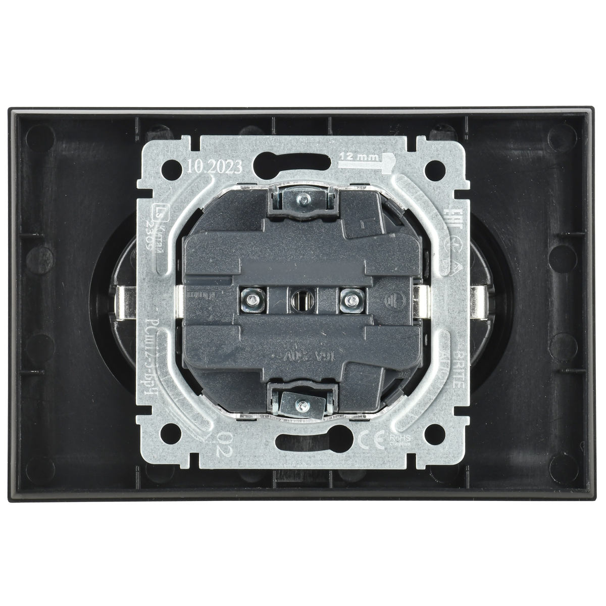 BRITE Розетка 2-местная с заземлением с защитными шторками 16А в сборе РСш12-3-БрЧ черный