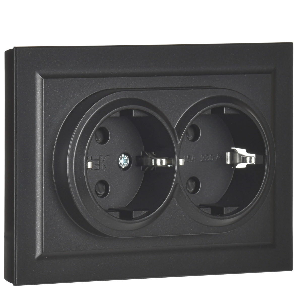 Купить BRITE Розетка 2-местная с заземлением с защитными шторками 16А в сборе РСш12-3-БрЧ черный | код BR-R24-16-K02-F | IEK | Магазин электрики - электрооборудование от разных производителей.