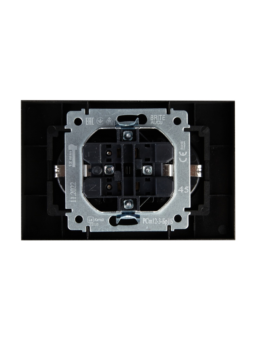 Наименование в прайсе производителя BRITE Розетка 2-местная с заземлением с защитными шторками 16А в сборе РСш12-3-БрТБ темная бронза